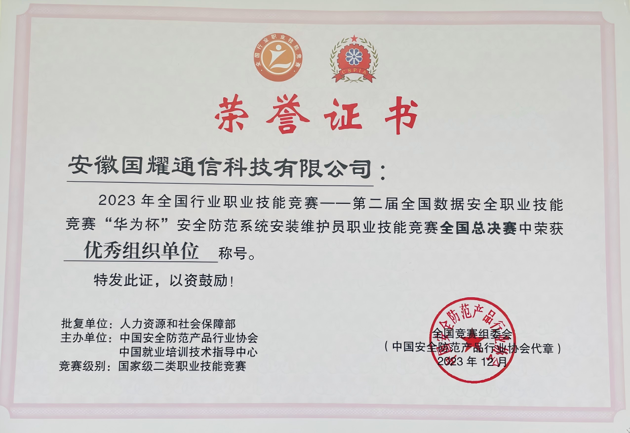 這些獎項不僅僅是一份榮譽,更是對國耀通信在數據安全領域的高度認可。它標志著國耀通信在安全防范系統安裝維護方面達到了領先水平,為行業樹立了標桿。同時,也激勵著國耀通信在未來的發展道路上,繼續砥礪前行,為保障數據安全、推動行業發展貢獻更多的力量。