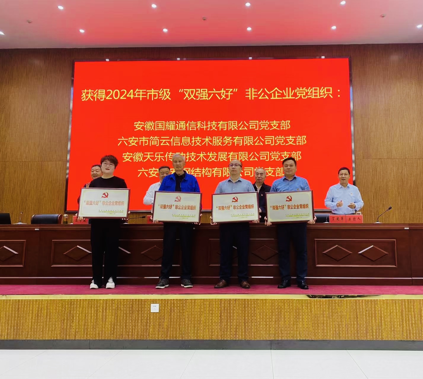 在黨建引領企業發展的征程中,安徽國耀通信科技有限公司收獲了一項重大榮譽!近日,安徽國耀通信科技有限公司黨支部被正式授予2024年市級“雙強六好”非公企業黨組織稱號,這不僅是對國耀通信黨建工作的高度認可,更是對公司多年來堅持黨建與業務深度融合發展模式的充分肯定。