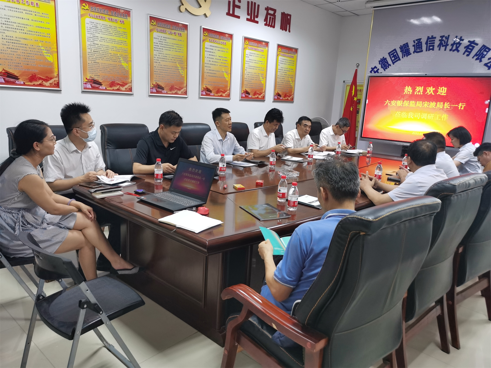 7月16日,六安銀保監(jiān)分局黨委書記、局長宋波、開發(fā)區(qū)管委工委副書記王燊、開發(fā)區(qū)財政局局長李欣及市農(nóng)商銀行、市建設銀行領導同志一行赴國耀公司走訪調研。