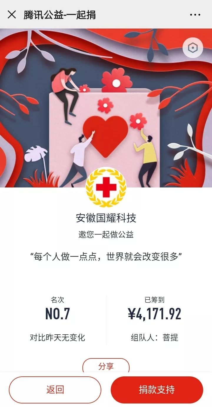 行動勝于一切。安徽國耀通信科技有限公司黨支部、工會組織公司黨員、職工積極為抗疫工作捐款,截止目前,已有46人參與。目前捐款活動還在進行中。同時,為保障裕安區應急廣播宣傳抗疫工作,安徽國耀通信科技有限公司組織人員、車輛赴杭州購買器材設備,為全市抗疫工作積極作為。國耀科技黨支部組織黨員志愿者一起捐。