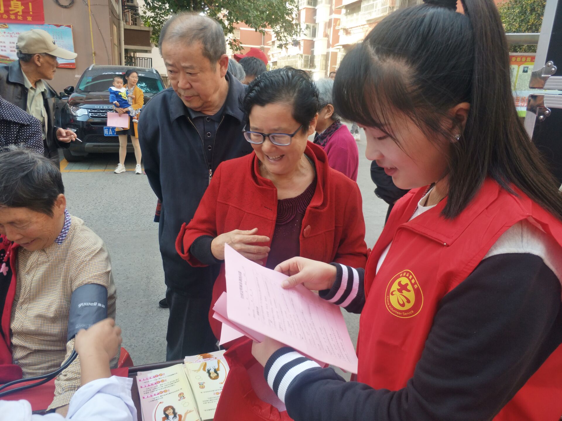 活動開始,大量居民在前往我們活動中心,由醫護人員免費給居民們測量血壓、血糖,對于血壓或者偏離正常值的居民,給出了一些相應的飲食和生活建議,并熱心詢問老人最近身體情況及生活狀態。